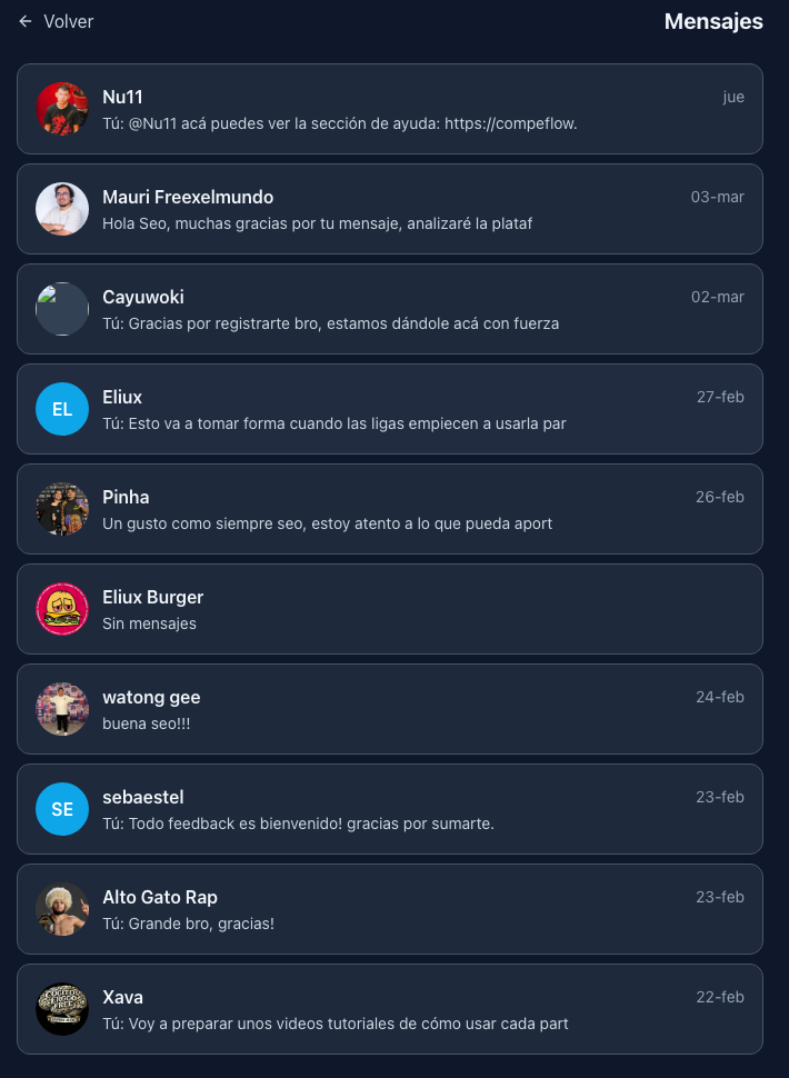 Puedes comunicarte con otros usuarios mediante mensajes directos, publicar estados en tu feed y mencionar a usuarios en ambos. Los mencionados reciben una notificación.