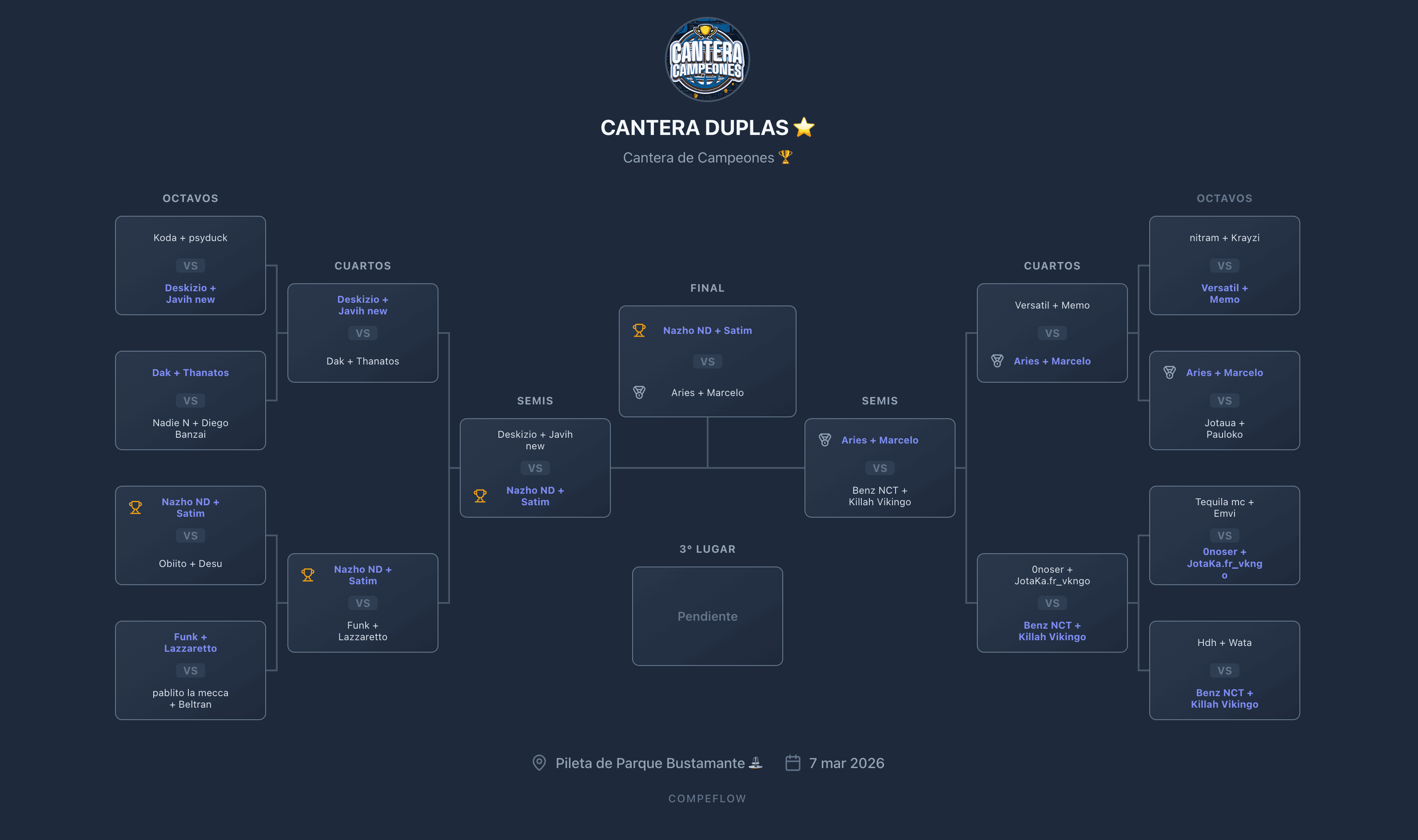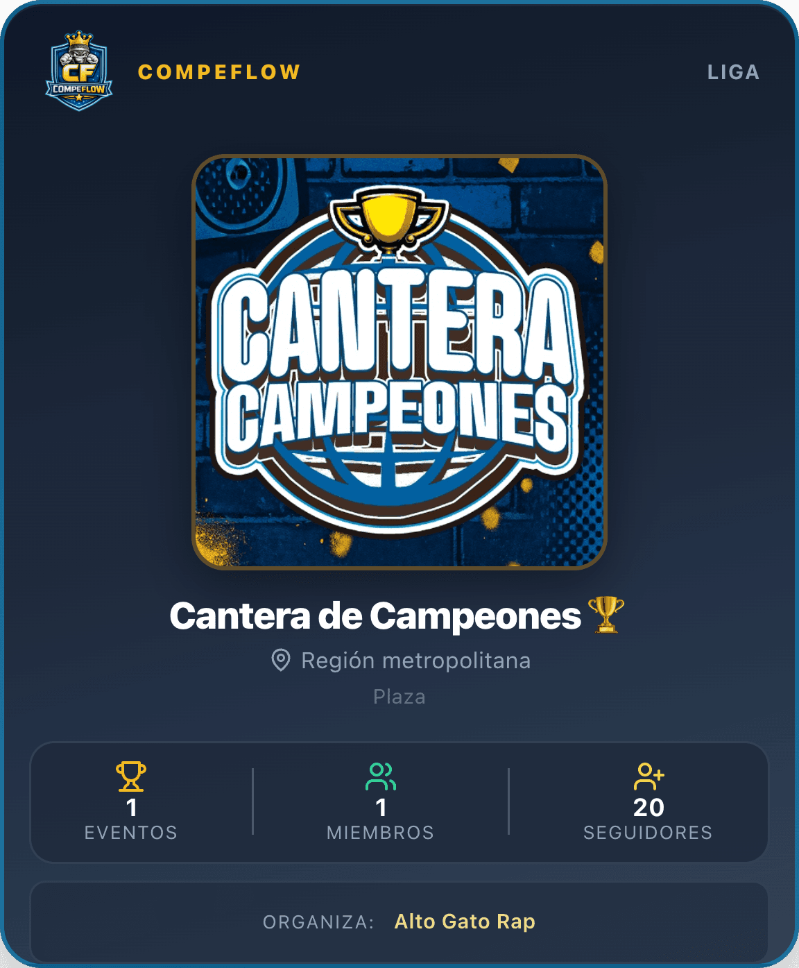 CompeFlow reúne en un solo lugar lo que hoy suele repartirse entre WhatsApp, planillas y publicaciones sueltas. Ordena la convocatoria, la operación y el cierre de cada evento, mientras conecta ligas, competidores, jurados y fans dentro de una misma plataforma.