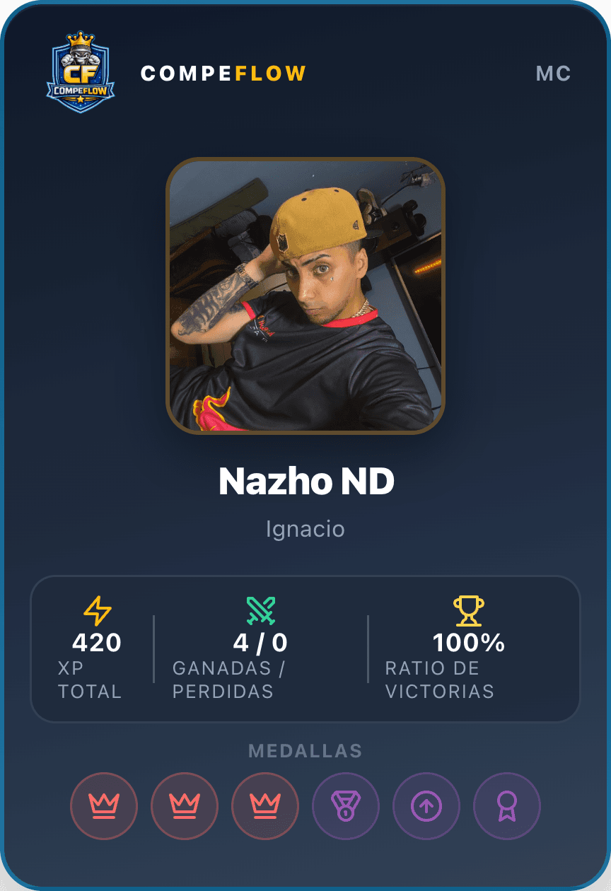 20 años en la escena del freestyle. Host y jurado en eventos internacionales. Tuvo la visión de CompeFlow y lidera el desarrollo técnico de la plataforma.